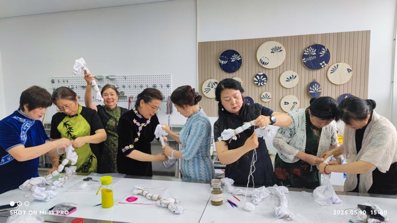 本网讯 5月10日,学校旗袍协会全体会员在会长邬红芳教授的带领下,走进纺织服装学院手工印染实验室拼布实训基地,开展了一场以“传承非遗·致敬母爱”为主题的母亲节专题活动——传统扎染技艺体验课。此次活动不仅是一次手工艺术的沉浸之旅,更是一场传统文化与女性美学深度交融的文化盛宴。